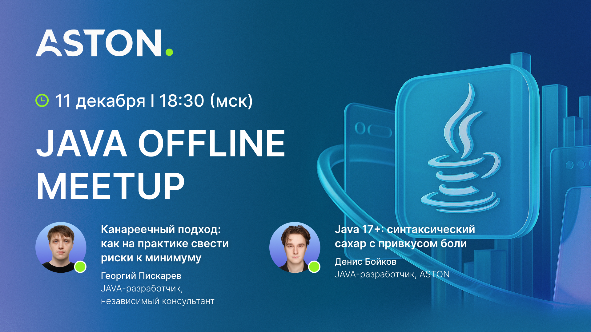 Приглашаем на бесплатный Aston Java Offline Meetup, где эксперты-практики поделятся знаниями и профессиональными лайфхаками.